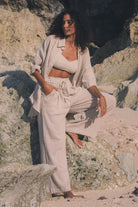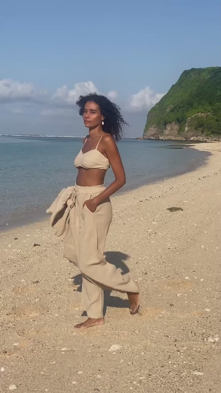 The Flow pants Sand beach is made with the perfect combination for the summer. This linen and cotton, woven fabric is soft on the skin, super light, and breathable. High waist with covered elastic and a drawstring, discreet side pockets, and, straight cut in the legs.