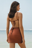 The Rio Sarong has a mini silhouette that accentuates the shape, with a flair for acutely flattering fits and criss-cross tying details. Add a completion to the beach look with the Rio sarong. Made from 100% cotton, and finished off with gold stopper accessories on the ties.
