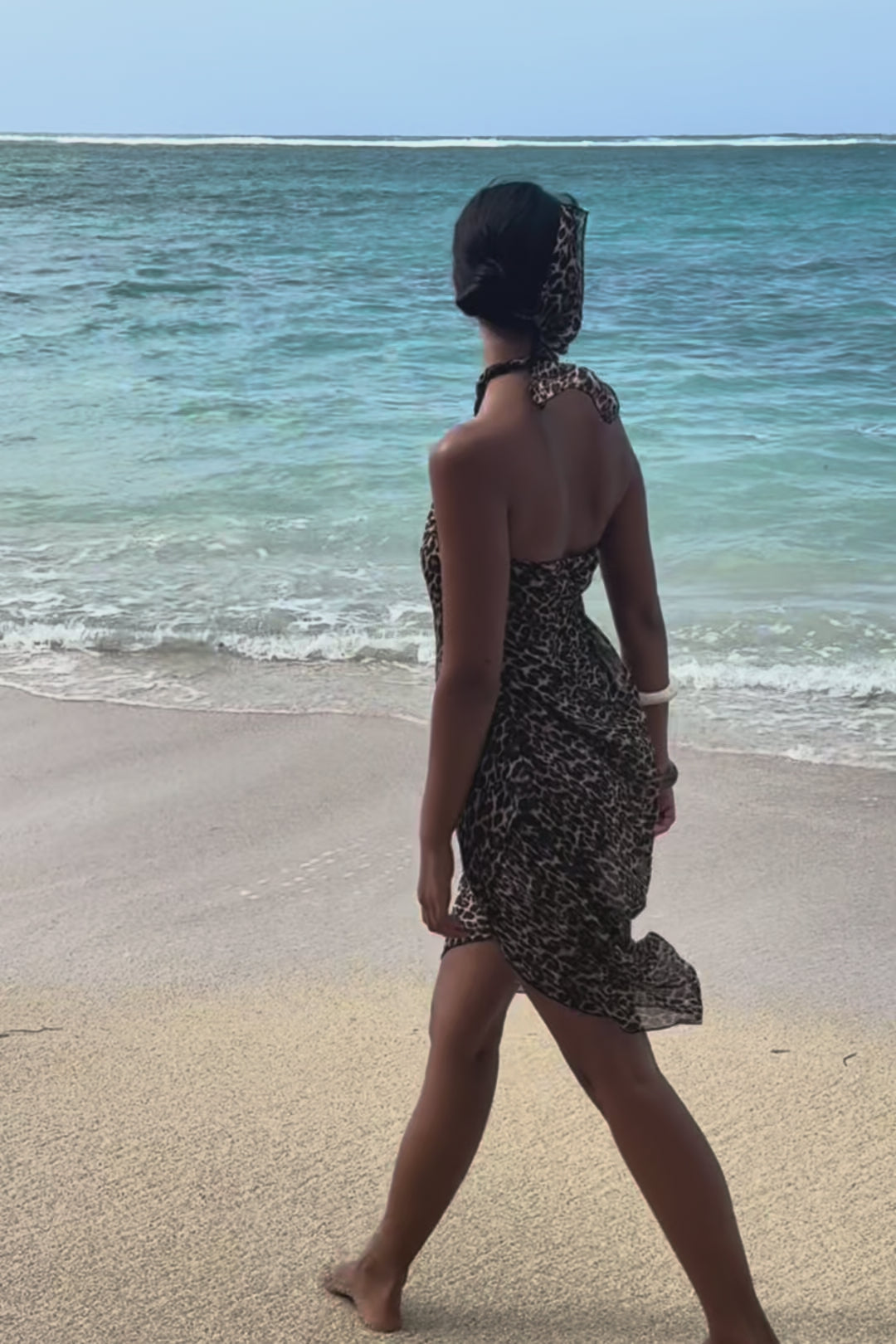 Endlessly versatile, The Leopard Pareo is crafted from 100% sheer silk and digitally printed in a striking leopard motif. Designed in an oversized rectangular cut, it drapes beautifully and offers styling freedom, from a classic sarong to a halter dress, skirt, or wrap top. Finished with delicate overlocked edges, it’s the perfect resortwear companion for sun-drenched days and seaside escapes.