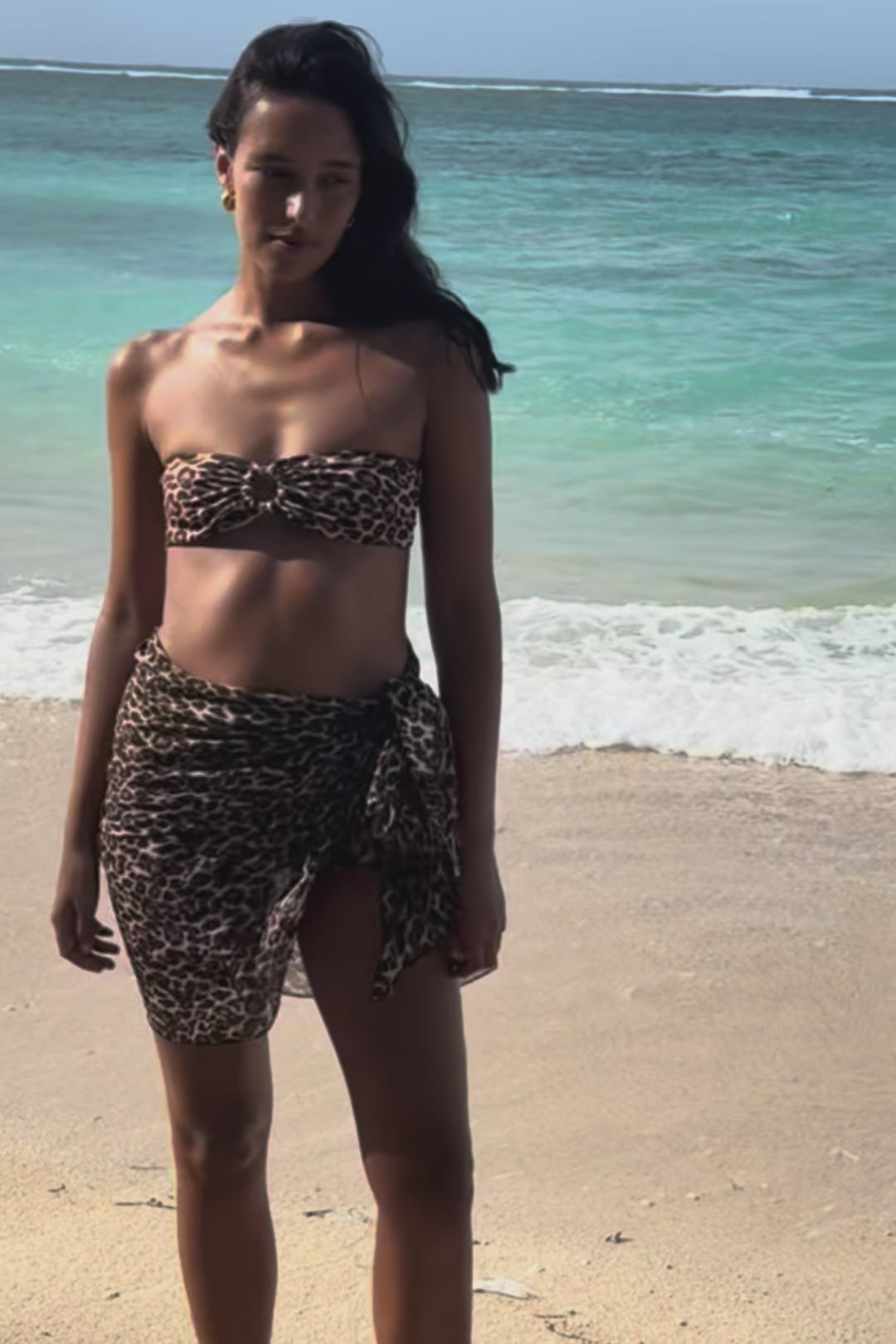 The Leopard Pareo is crafted from sheer, lightweight silk and digitally printed in a bold leopard motif. Designed in a classic rectangular shape with overlocked edges, it drapes beautifully and feels effortless against the skin. Versatile and refined, it can be worn as a sarong, a headscarf, or tied onto your bag for a touch of print.