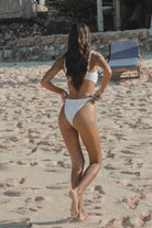 Bahia bottom is made with texturized fabric and eco lining. It has a high leg cut with thick side strings and a medium coverage, making this bottom classic and comfortable. It’s definitely a super chic and elegant swimwear bottom. We recommend styling this with Bahia and Metis top, but feel free to mix and match!
