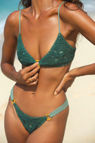 Lua bottom is made in a beautiful combination of Lycra and Crochet, it features a thick side string and golden rings on both sides.