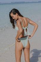 Made with high quality recycled ribbed polyamide, Bronze full bottom is made for the ones who likes more coverage swimsuits. The elastic strings on the sides brings elegance to this very comfortable bottom. Perfect for any beach occasion or water activities.