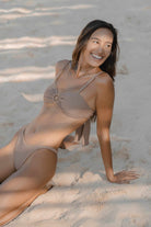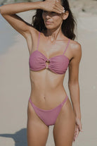Made with high quality recycled ribbed polyamide, Bronze full bottom is made for the ones who likes more coverage swimsuits. The elastic strings on the sides brings elegance to this very comfortable bottom. Perfect for any beach occasion or water activities.