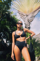 Zeus bottom is a high waisted bottom features a moderate coverage with a V cut in front that gives a extra coverage on the waist providing more comfort, in addition to enhancing the body’s curves in a sophisticated way. The bottom is made of a ECONYL® regenerated Nylon that turns waste problems into fashion and interior solutions. This sustainable fabric is versatile, hyper-resistant, thin, elegant, stretch, soft and breathable.