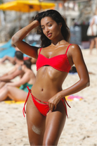 Features with a handmade crochet detail, a rounded design with structured sewing in the center of the bust that gives a vintage feeling to this timeless top. Made with high quality recycled polyamide, it comes with adjustable strap on the shoulder and a thick tie strap on the back to set according to your best fit. Hand-made in Bali.