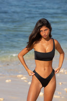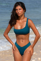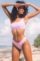 Recycle version of our one shoulder bikini top made with very soft Recycled polyamide. The Gaya top has a cropped fit and strong support, which is a great option for practicing sports. It is perfect to wear as swimsuit for a day on the beach and also to wear with an outfit. We recommend styling this with the Gaya Bottom but feel free to mix and match.