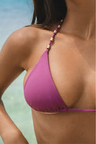 The Angra bikini top has a classic triangle silhouette with silver details along the straps and it’s adjustable ties at the back. The Angra Top is double-lined with sliding cups, made from 100% regenerated nylon.