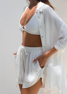 Flow shorts is made with 100% eco-friendly viscose fabric. Livaeco by Birla Cellulose™ is sourced from FSC® certified sustainable forests. Livaeco fabric is Pro-Planet and helps save water, biodegrade fast and reduce CO2 emission The Flow shorts is made with the perfect combination for the summer, is soft on the skin, super light, and breathable. High waist with covered elastic and a drawstring, discreet side pockets, and slight transparency.