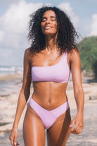 Recycle version of our one shoulder bikini top made with very soft Recycled polyamide. The Gaya top has a cropped fit and strong support, which is a great option for practicing sports. It is perfect to wear as swimsuit for a day on the beach and also to wear with an outfit. We recommend styling this with the Gaya Bottom but feel free to mix and match.