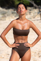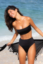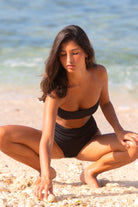 Timeless bandeau bikini top made with sustainable materials. We use ECONYL® regenerated Nylon that is hyper-resistant, thin, stretch, soft and breathable on the skin. This strapless top is perfect for minimizing shoulder tan lines while hanging out in the sun. Pair with "HOTPANTS bottom" for a complete look!